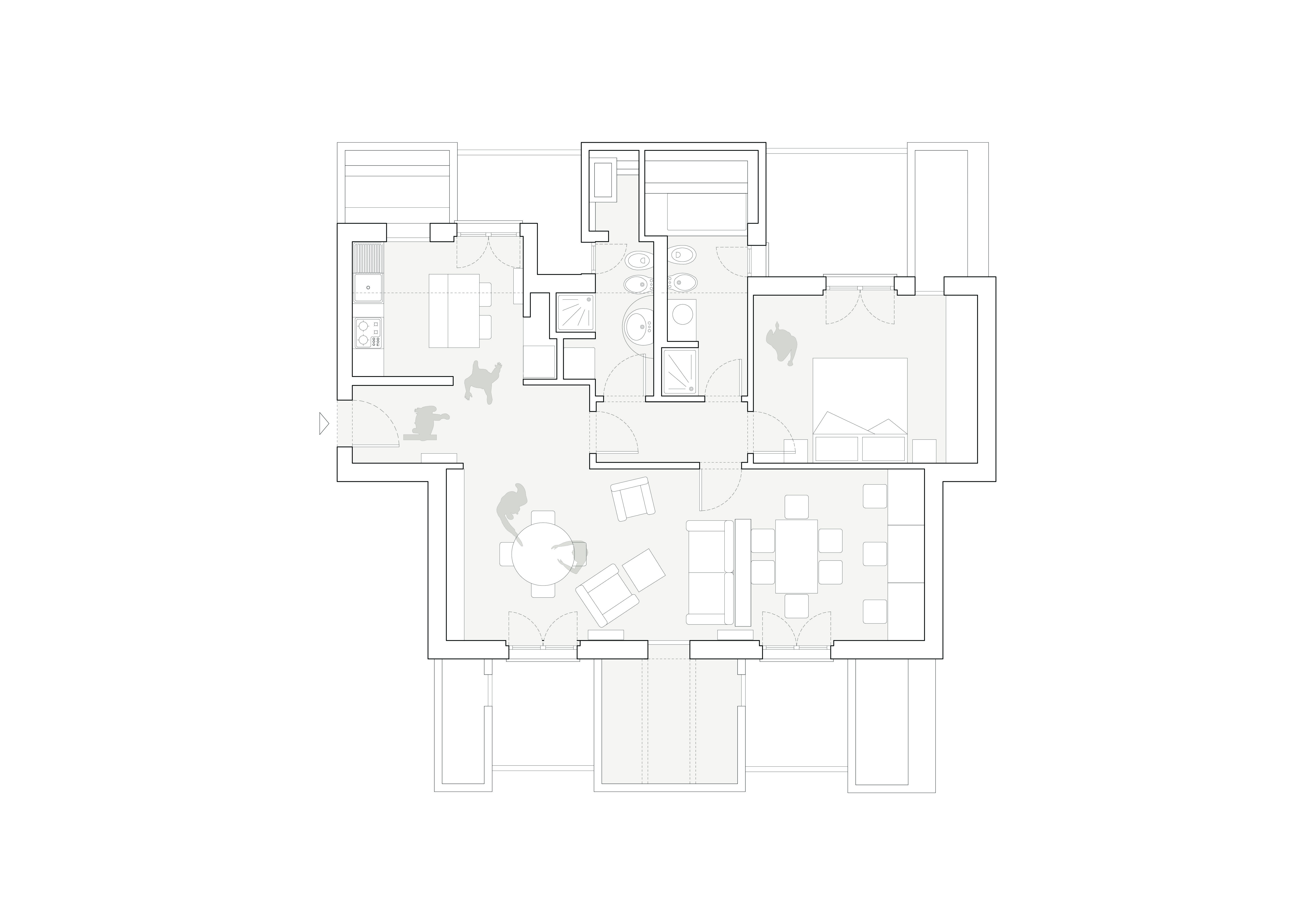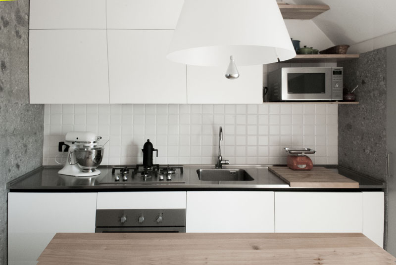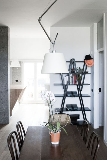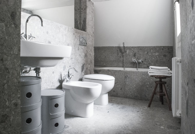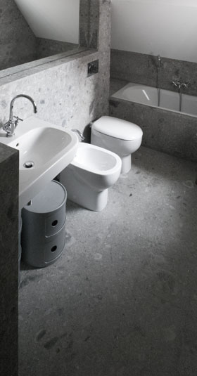 L’intervento si propone di adibire i locali a un uso flessibile nel tempo consentendo modifiche della disposizione delle stanze. Il grande soggiorno può infatti essere nuovamente ridiviso in due camere avendo già il doppio accesso e le necessarie predisposizioni impiantistiche. Vengono scelti materiali urbani legati tanto alla tradizione milanese quanto all’attualità come il Ceppo di Grè, che viene utilizzato per rivestire bagni e cucina, in contrapposizione a un rivestimento ceramico estremamente artificiale che ricorda le metropolitane delle capitali europee. Il pavimento, in doghe di massello di rovere di slavonia di dimensioni differenti, maschiato e bisellato, fa da sfondo ad arredi scelti accuratamente per proporre insoliti contrasti.